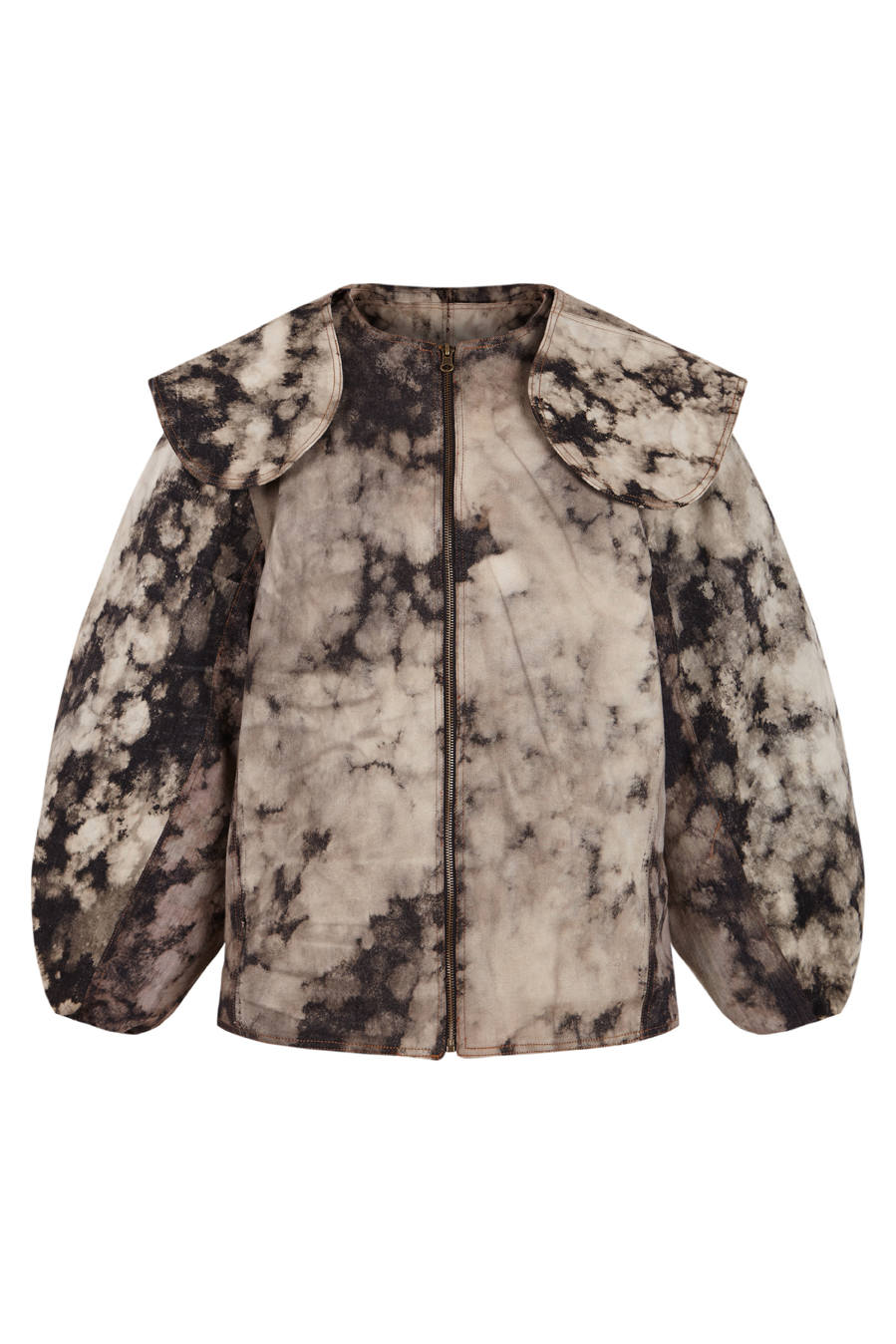 Esta chaqueta realza una de las formas icónicas de la firma junto a la técnica de reciclaje de tejido “Upcycling”. La solapa superpuesta en los hombros, añade un toque sofisticado elevando su estilo general.