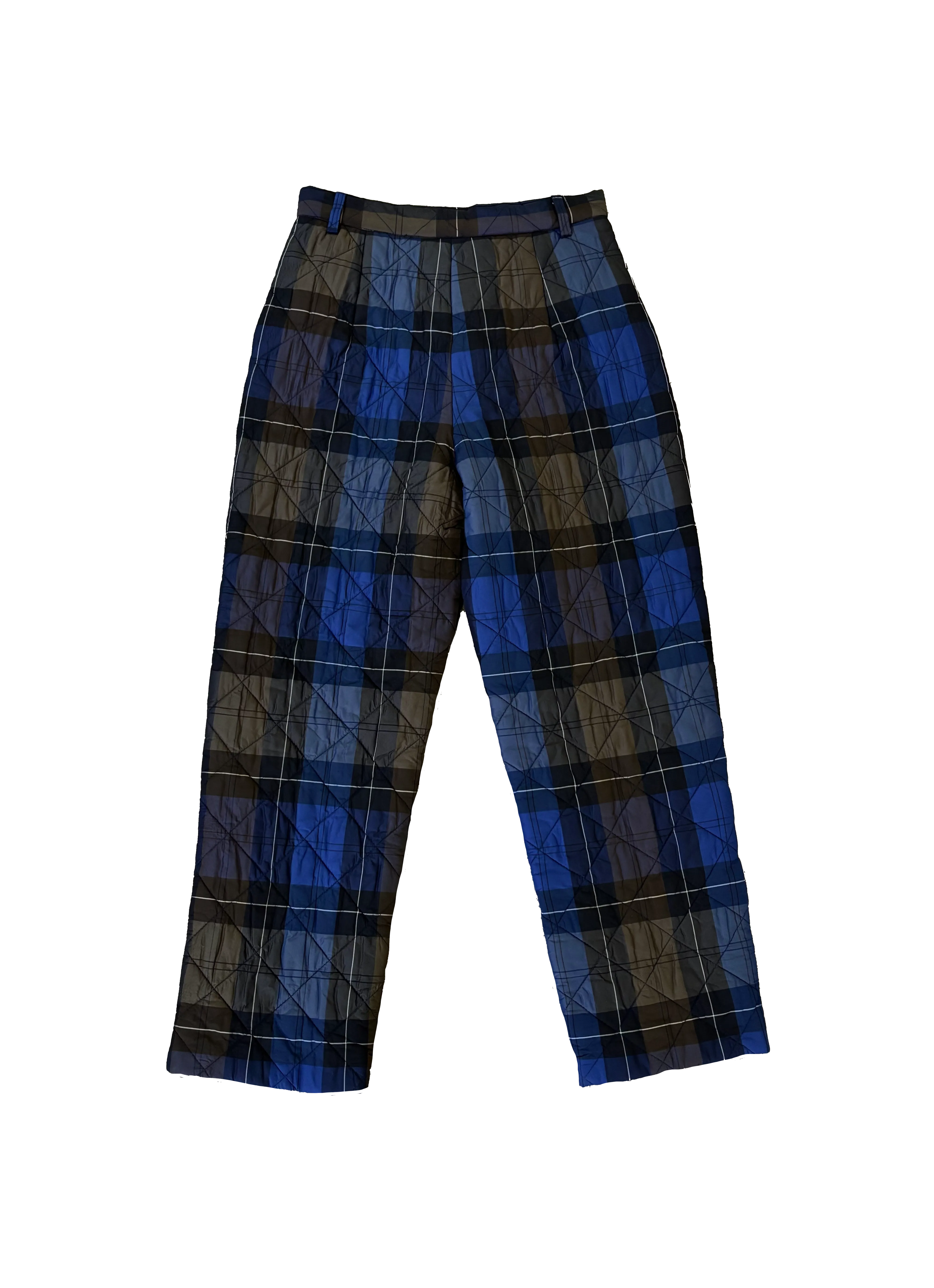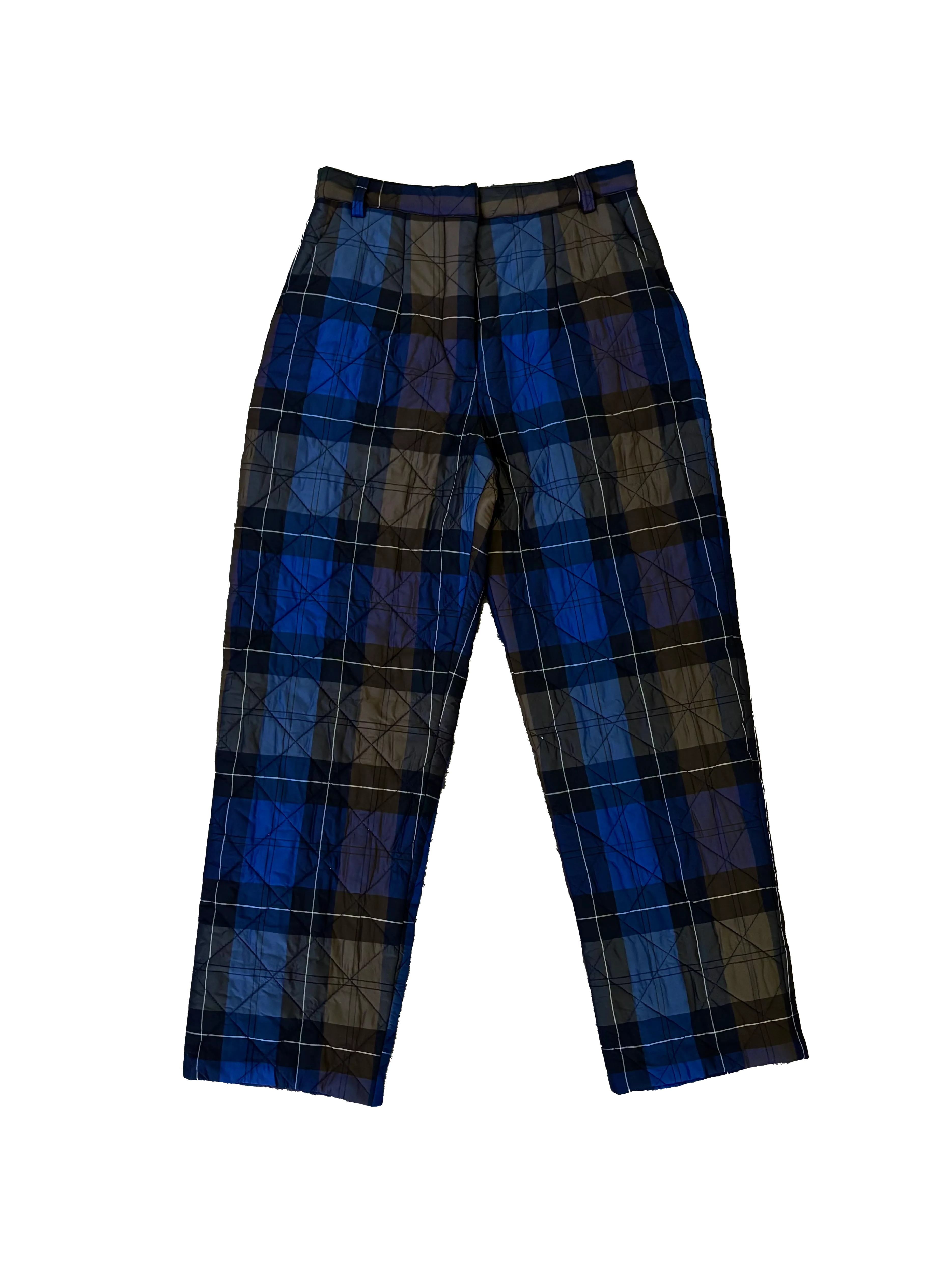 Pantalón acolchado de cuadros en tonos azules y verdes, con corte amplio y cintura alta que aporta comodidad y un fit moderno. Su tejido acolchado ofrece calidez sin perder ligereza, perfecto para climas de nieve.