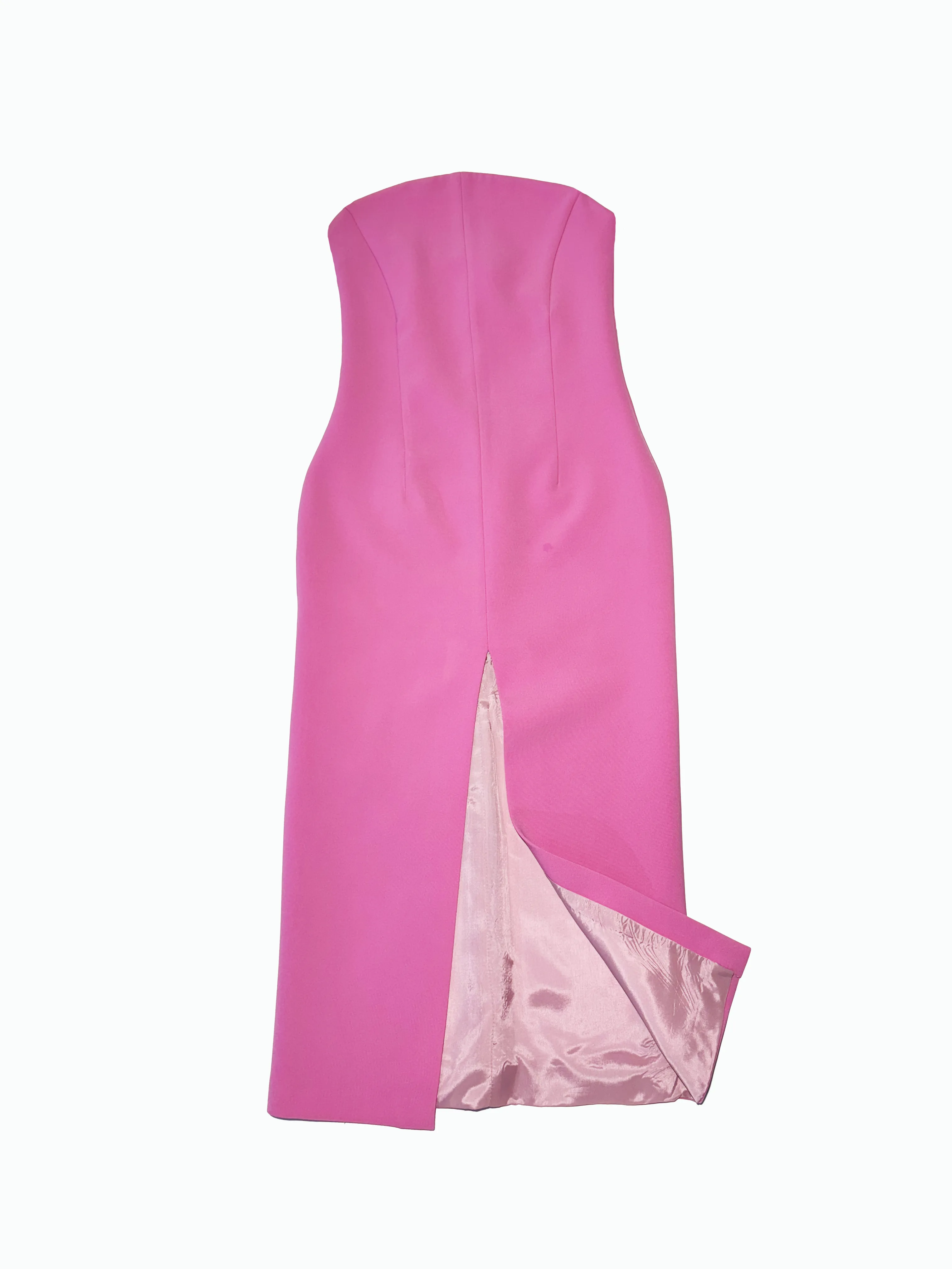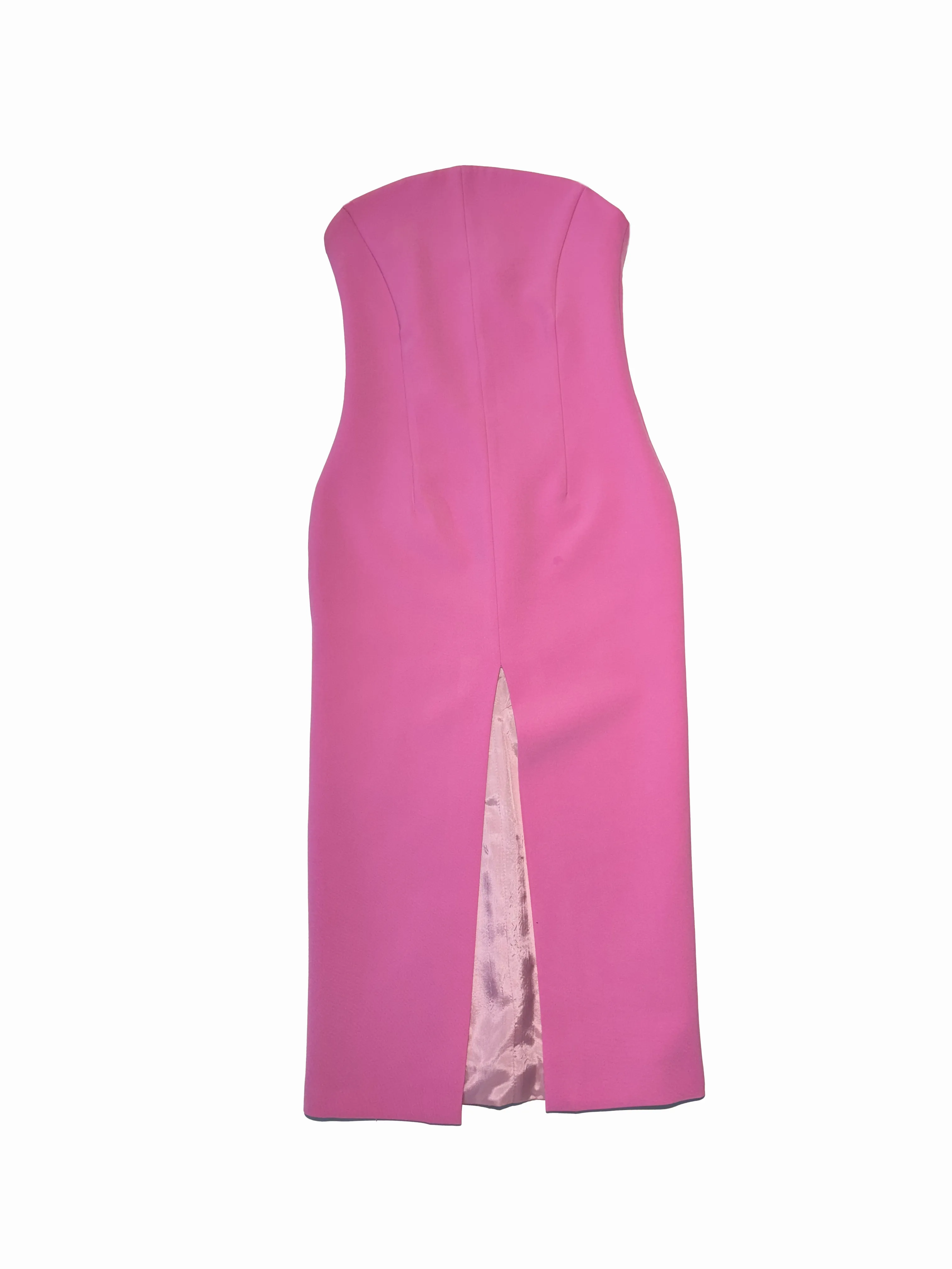 Este vestido palabra de honor presenta una silueta limpia y elegante, con pinzas frontales que realzan la forma y aportan un ajuste favorecedor. La parte trasera tiene una caída recta que aporta un toque sofisticado al diseño. Una pieza ideal para eventos en los que buscas estilo, personalidad y un acabado impecable.